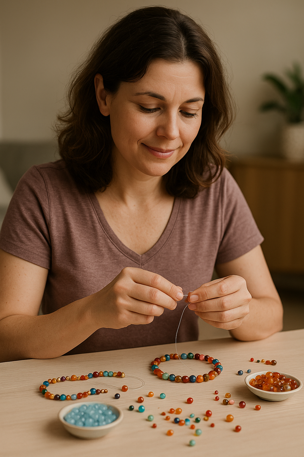 Vive una experiencia creativa y relajante diseñando pulseras o collares con piedras naturales. Ideal para reducir el estrés, mejorar el ánimo y conectar contigo mientras creas tu propia pieza.